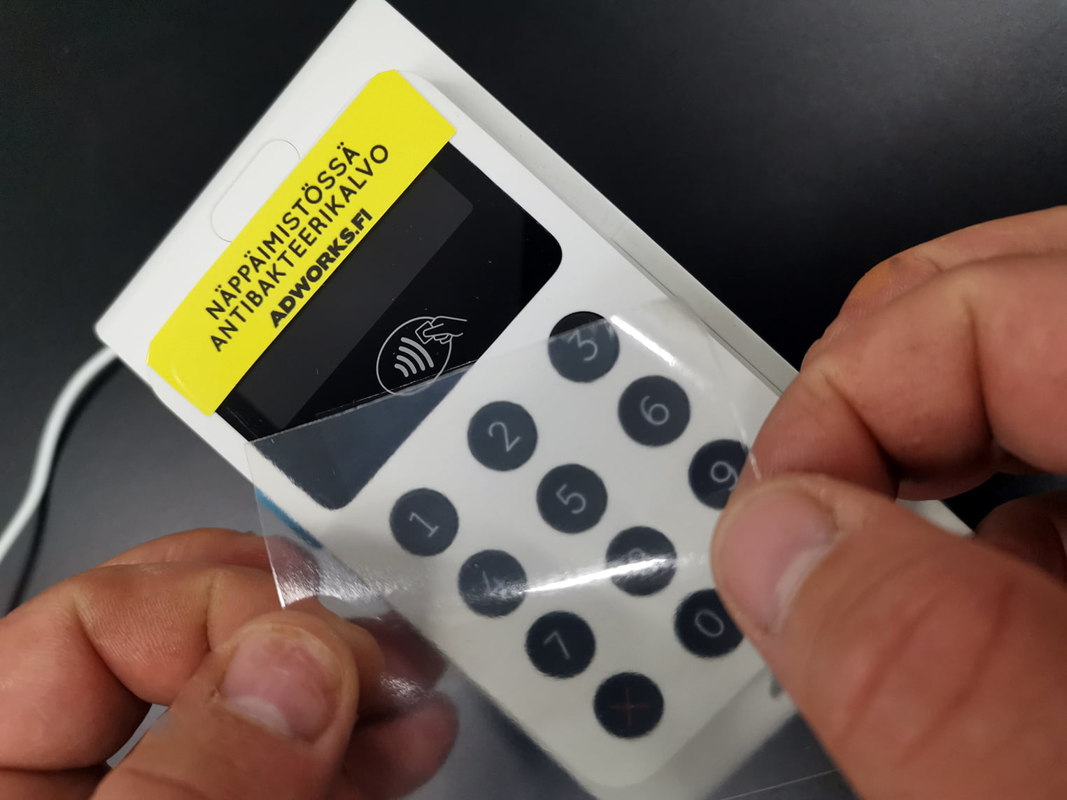 Kalvoa on saatavilla vakiokoossa (10 cm x 10 cm) tai kohteeseen räätälöidyillä mitoilla. Vakiomittainen kalvomme on sopiva suurimpaan osaan maksupäätteistä. Kalvo on helppo myös itse leikata haluttuun kokoon ja muotoon.