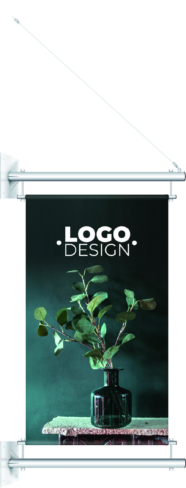 Korkealaatuiset, ruostumattomasta teräksestä valmistetut banderollikiinnikkeet kiinnitetään seinään tai muuhun kiinteään rakenteeseen. Tuote on iskunkestävä ja kangastuloste on vaihdettavissa. Kangastulosteen maksimikorkeus on 300 cm.