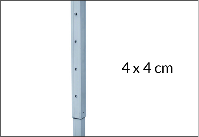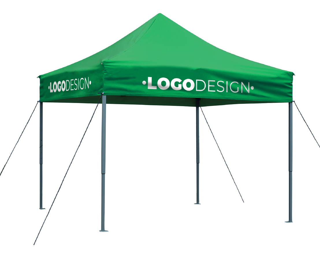 Mainosteltassa on vakaa alumiinirunko ja katto on tulostekangasta. Paketti sisältää myös maapiikit, köyden ja kantokassin. Teltan korkeus on säädettävissä 240 cm asti. Lisätilauksesta seinät. Katto ja seinät tehdään vettä hylkivästä Polytent 220 g/m2 -kankaasta tai Polytent PVC 330 g/m2 B1 -kankaasta. Teltta on monipuolinen ja sopii sekä sisä- että ulkokäyttöön.